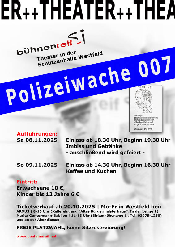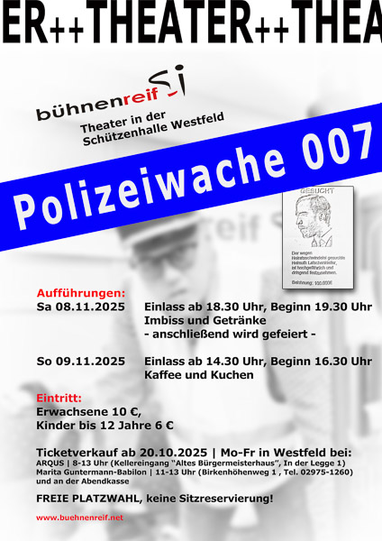 „Möchten Sie erleben, wie es auf der kleinen Polizeiwache zugeht, dann freuen wir uns auf Ihren Besuch in Westfeld, wo die Schützenhalle zur Polizeiwache umfunktioniert wurde“.